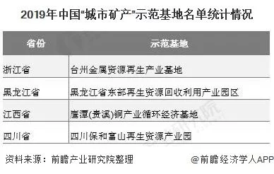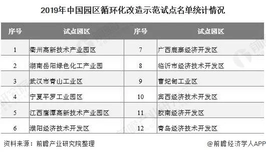 根据2019年4月17日国家发改委与财政部联合发布的《关于2019年园区循环化改造示范试点和“城市矿产”示范基地验收结果的公示》,现阶段,共有12个园区循环化改造示范试点和4个“城市矿产”示范基地通过验收。