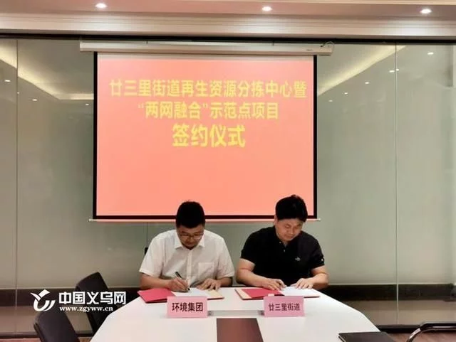 6月19日上午,义乌市廿三里街道与义乌市环境集团有限公司举行了再生资源分拣中心暨“两网融合”示范点项目签约仪式。